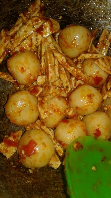 Simple economical basreng meatball chips.